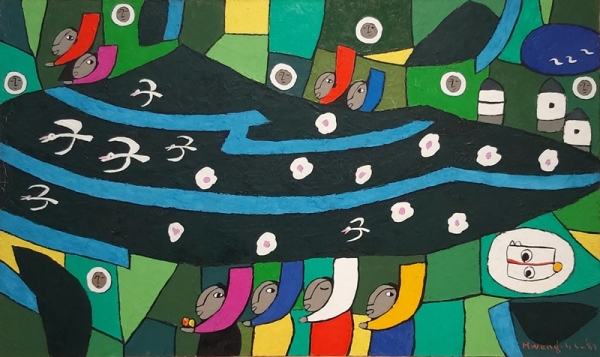 황영성 관련링크 이전글 다음글 목록 본문 약력소개 서양화가 황영성은 1941년 강원도 철원 출생으로 한국전쟁 때 광주로 피난 왔고, 조선대학교 미술학과와 동 대학원을 졸업했다. 1965년 첫 개인전(나주 영산포다방)을 비롯, 1991(프랑스 라틀리에 앙제), 1992(파리 갤러리 베르넴 준), 1995(파리 프랑소와 미텐느화랑), 1996(파리 빨리 데 꽁그레미술관, 광주시립미술관), 1997(프랑스 망테라 졸리 시립미술관, 아자치오 시립미술관, 런던 로얄칼리지 오브 아트 헨리 무어 갤러리), 1998(니스 아시아미술관, 서울 갤러리현대·박영덕 화랑), 2000(서울 갤러리현대, 생 레미 반고흐 기념 현대미술관), 2001(네덜란드 갤러리 코바렌코, 브뤼셀 U.L.B 현대미술관), 2002(뉴욕 파슨스스쿨), 2004(울산 현대예술관, 광주 신세계갤러리), 2005(대구 이인성미술상 수상작가전), 2006(드레스덴미술관, 나폴리 크리스피미술관, 서울 갤러리현대), 2007(쌩떼띠엔느 시립현대미술관, 서울 갤러리H), 2009(보성 우종미술관, 서울 갤러리현대), 2010(서울 갤러리 현대, 광주 로터스갤러리), 2012(베이징 금일미술관, 독일 에닝겐 갤러리 슈라드-슐로스, 뮌헨 갤러리 타니), 2013(독일 로스톡시립미술관), 2015(뉴욕 슈스킨갤러리, 상하이 히말라야미술관, 마산 갤러리선), 2016(광주 신세계갤러리), 2017(광주 국립아시아문화전당 문화창조원 복합6관, 광주 양림미술관), 2018(서울 현대화랑), 2020(서울 갤러리H), 2021(광주 로터스갤러리), 2023(광양 전남도립미술관) 등의 개인전을 가졌다. 단체전 중 2,000년대 이후로는 [샤르자비엔날레](2001, 아랍에미리트), [한일미술교류전](2004, 도쿄 일본미술회), [베이징국제비엔날레](2005, 북경), [광주현대미술전](2006, 광주·광저우·타이페이). [중진원로초대전](2006, 서울시립미술관), [한국현대회화 대표작가전](2008, 대만), [이인성미술상 역대수상작가전](2009, 대구), [순천만 국제환경아트페어](2010, 순천), [미래의 꿈](2010, 의정부 예술의전당), [아트베이징](2011, 중국), [한중수교20주년기념 ‘무등설화’](2012, 북경 금일미술관), [광주미술상 20주년전(2013, 광주시립미술관 상록전시관), [남도미술200년](2015, 부산시립미술관), [몸의 언어](2016, 구리아트홀 갤러리), [아트광주16 특별초대전](2016, 국립아시아문화전당 창조원 복합6관), [동신대학교 30주년 기념 ‘남도예술’](2017, 동신대학교 박물관), [조선대미술관30주년전](2019, 광주 조선대미술관), [남도미술의 뿌리](2019, 광주시립미술관), [2021,반갑소](2021, 광주 신세계갤러리), [남도 구상화단의 맥](2021, 무안군호승우미술관), [시가 있는 그림전](2023, 서울 서림갤러리), [수집, 호남의 기억과 시간](2024, 광주시립미술관), [예향의 격](2024, 함평군립미술관), [무등에서 영산으로](2024, 광주시립미술관) 등의 전시에 참여했다. 작품활동과 더불어 조선대학교 미술대학장·부총장, 광주시립미술관장, 광주비엔날레 조직위원·이사, 아시아문화중심도시 조성위원, 광주미술상 운영위원장 등을 역임했다. 또한 전라남도문화상(1981), 제25회 몬테카를로 국제회화제 특별상(1991), 금호예술상(1993), 이인성미술상(2004), 황조근조훈장(2006) 등을 수상했다. 작가의 작품세계 “내 작업의 주제는 가족이야기이다. 근 40여 년의 작업기간 중 수련기 10년을 지나곤 줄곧 가족이야기의 30여 년이었던 것 같다. 가족에 대한 나의 첫 인식은 그리움이었다. 어린 시절, 골목길 담 너머로 불그스레 따뜻하게 비쳐오는 창문의 불빛에 그려지는 어느 가족들의 오붓한 모습을 그리워했다. 그래서 내가 살았던 초가집을 그리고 그 속에 살아가는 농부와 아내, 어린아이들, 큰 눈의 소, 활개 치는 닭과 개들, 그리고 초가지붕의 박 넝쿨, 뒷동산, 거기에 걸려있는 초생달까지 내 그림 속의 가족이야기들이었다. 그 가족이야기는 조금씩 더 큰 어우러짐으로 이어져갔다. 초가집과 초가집, 마을과 마을, 전라도 넓은 들, 소시장과 강강수월래 등을 통해 컨 마을과 큰 가족으로 만나게 되었다. 이 작업은 80년대 말까지 계속되었다. 1990년대 나는 큰 여행을 떠났다. 알라스카에서 멕시코를 거쳐 페루까지 이어지는 아메리카 몽고리안 루트를 따라 이동하는 여행이었다. 이미 몇 년 전부터 유럽과 아프리카, 인도를 여행하면서 또 다른 수많은 가족들을 만났다. 사람들 뿐 아니라 나무들, 꽃들, 뱀들, 물고기들, 야생의 동물들 그리고 수많은 돌덩이와 물과 바람까지도, 비행기도, 자동차도, TV도, 컴퓨터도, 우주 속 별과 달까지도 귀중한 가족으로 만나게 되었던 것이다. 내가 만난 모든 존재하는 것들, 그들은 나의 가족 나의 사랑이어야 했다. 그래서 내 그림 속에는 그런 모든 것들이 모여든다. 하나의 우주 가족으로, 지구촌 가족으로 서로 어울리는 그런 가족이야기이다. 내 가족이 있는 곳과는 멀리 떨어진 남미 아마존의 숲이 불타는 광경, 캐나다 맑은 해변에 떠오르는 기름덩어리에도 가슴 아파한다. 또한 중동 특히 이라크의 아프고 무서운 전쟁의 모습에 어쩔 줄 몰라 한다. 나의 존재하는 모든 것들에 대한 서로 서로의 사랑과 어울림과 평화와 존중만이 새 인류, 새 세상, 새 자연, 새 우주로 살아남을 수 있는 방법이라 생각한다. 그리고 그 가