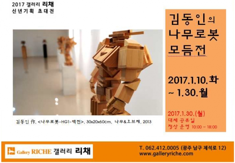 김동인 '나무로봇 모듬전' 페이지 정보 작성자 갤러리리채 작성일17-01-13 14:58 조회5,398회 댓글0건 관련링크 이전글 다음글 목록 본문 김동인 ‘나무로봇 모듬전’ <?xml:namespace prefix = "o" ns = "urn:schemas-microsoft-com:office:office" /> 갤러리 리채, 2017신년기획 두 번째 초대작가전 2017. 1. 10 - 1. 30 광주 태생 나무로봇 조각가로 전시, 아트마켓, 체험 프로그램 개발 등 다양한 활동 중 환경파괴의 주범인 인간 vs. 자연․생태계를 대표하는 나무로봇의 대립 구도로 표현‘환경지킴이 나무로봇’ 100여점 총 망라 … 가슴 속 미니어처 로봇은 나무로봇을 조종하는 ‘나무 정령’ 수호신을 의미큐브릭 형태 로봇에서 ‘키네틱 아트’를 상상하는 ‘구체관절로봇’까지 100여점 총 망라 … 최저 2,000원 ~ 700,000원 가격대로 구입 가능‘마니아층(예: 키덜트족)’의 관심 기대 … 남녀노소 누구나 쉽게 접할 수 있는 ‘종이 로봇’ 체험 프로그램 개발 중 인공지능 로봇이 인간의 능력을 대체하고 위협한다는 ‘알파고’ 시대에 ‘나무로봇’을 만드는 지역 청년 작가의 전시가 열려 화제다. 광주광역시 남구 진월동 12번지 록하빌딩 지하 1층에 위치한 갤러리 리채(관장: 오병현)에서는 2017 정유년 새해 신년기획 두 번째 전시로 인간과 환경 문제를 이야기하는 김동인(35) 작가를 초대해 오는 30일(설날 연휴 27~29일 휴무, 대체공휴일 30일 정상운영(10:00-18:00))까지 나무조각 ․ 설치전을 개최한다. 김동인 작가는 조선대학교 미술대학 조소과를 졸업하고, 흙 작업부터 회화, 미디어, 컴퓨터 그래픽 분야 등 다양한 장르에 도전해오면서 최근에는 드로잉으로 계획한 로봇 이미지 외에 자신의 무의식적 발상을 큐브릭 형상 및 움직이는 구체관절로봇 형태로 제작하면서 전시와 아트마켓, 체험 프로그램 등에 활발히 참여하고 있다. 김동인 작가의 나무로봇은 인간에 의해 개발되거나 상상된 로봇, 즉, SF영화 ․ 만화 ․ 애니메이션 등에 등장하여 최첨단 기술의 동력으로 움직이는 모습을 보여주는 여타 로봇과는 다르다. 김동인 작가의 나무로봇은 환경을 파괴하는 주범인 인간들과 대립 구도에 서 있는 ‘환경지킴이’로 존재의 이유를 부여받고 탄생하였으며, 인간의 ‘영혼’과도 같은 기능을 하는 ‘나무정령’을 가슴에 품은 채, 자연을 지키기 위한 나무로봇의 메시지(의식세계)를 인간들에게 전달하고자 하는 점에서 그 제작의도와 가치가 차별화된다. 2013년 이후, 김동인 작가는 변신이 가능한 나무로봇 ‘MG 시리즈’와 ‘HG 시리즈’를 개발해 과거 나무로봇에 비해 스케일이 큰 나무로봇을 보여준 바 있다. 관객들이 직접 ‘나무로봇’을 만져보면서 그 움직임을 체험할 수 있도록 배려하는 ‘핸즈-온’ 작품으로 진화되어 제작기법과 전시장디스플레이 콘셉트도 조금씩 변화되어 왔다. 김동인 작가의 작품의 묘미는 ‘인간에 의해 만들어진 인공물로서의 로봇이 역설적으로 자신을 탄생시킨 인간을 공격하는 이야기가 내포되어 있어 관객들에게 재미와 흥미를 불러일으킨다.’는 데 있다. 또한, ‘환경오염’이라는 문제에서 가장 취약하게 수동적으로 대응할 수 밖에 없는 식물 이미지로서의 ‘나무’를 ‘인간화’하며 작가가 ‘움직임’을 부여해 인간과 대항하는 로봇으로 ‘의미적 부활’을 시도했다. 댓글목록 등록된 댓글이 없습니다. 이전글 다음글 목록