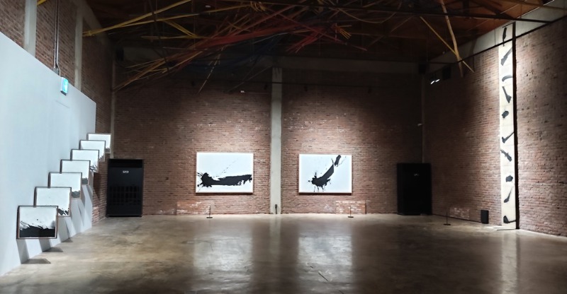 ‘변이된 질서’ ; 수묵으로 함축된 생멸 순환 페이지 정보 작성자 조인호 작성일23-09-19 11:13 조회5,568회 댓글0건 관련링크 이전글 다음글 목록 본문 이동환 <칼로 새긴 독립전쟁> <검은 숲> 연작 ‘변이된 질서’; 수묵으로 함축된 생멸 순환 2023.09.14-11.26 / 담빛예술창고 수묵에는 생멸(生滅)이 있다. 생명의 시원으로서 물과 소멸의 흔적인 재가 혼합되어 있기 때문이다. 스미고 번지며 섞이는 물의 속성은 뭇 생명활동과 닮아있고, 이런 은밀한 작용을 가시적 현상으로 드러내어 주는 것은 타고 남은 재-숯가루의 질료 흔적인 것이다. 더욱이 먹색은 세상 온갖 색채의 총체이니 거기에는 생성도 소멸도 모두 담겨있다. 2023전남국제수묵비엔날레 시군 기념전의 하나로 담양 담빛예술창고가 마련한 ‘변이된 질서’ 전시에서 탐구하는 ‘생성’과 ‘소멸’의 이치도 “자연과 인간사회에 빗대어진 섭리, 순환 과정을 되돌아보는 사유의 자리”로서 기획 의도를 함축하고 있다. “‘수묵(水墨)’의 ‘생장화수장(生長化收臟)’에 기반하여 생겨나고 사라지는 인과관계의 의미에 대한 고찰을 담은 전시”라는 것이다. 이 전시에는 수묵의 속성대로 “태어남과 죽음, 생성과 소멸이라는 거시적 관점”을 현대 시각예술 작품으로 풀어내어 줄 우종택, 이동환, 임현락, 윤일권, 서정빈, 여상희 등 6인의 작가가초대되었다. 우종택은 원초적 몸짓 그대로 자유의지의 발산행위를 화폭에 옮겨내는 작업과, 모든 것이 소멸한 상태로서 타고 남은 것의 흔적을 숯이 되거나 먹을 입힌 고사목의 천연 질료상태로 모아놓는 상반된 작업을 병행한다. ‘물아일체의 자연관계성(物我一體 自然關係性)’을 화두로 삼은 작업들인데, 정신적인 것과 물리적인 것, 시원과 소멸의 양극단 사이에서 그는 ‘무행’(無行)을 통한 ‘만물의 기원’을 탐구한다. 그러면서 수묵을 풀어내던 화폭의 평면성으로부터 탈피를 위해 작업의 공간연출을 이른 바 ‘반사수묵’ 형태로 확장시키기도 한다. 원래의 제 형체를 잃지 않은 상태로 숯이 된 검은 고사목을 바닥 거울 위에 올려놓아 산화된 육신의 잔영을 반추시켜내고, 거기에 옆의 평면 화폭들까지 비치게 해서 존재의 본질에 대한 사유의 폭을 명상의 세계로 넓혀보는 작업이다. 정신과 질료, 평면과 입체형상과 3차원을 넘어선 공간투영의 잔영까지 하나로 통하도록 길을 내는 작업이라 하겠다. 임현락은 생멸 또는 시종(始終)을 한 화폭에 함께 담으면서도 그 극단 사이의 기나긴 생의 과정을 길게 이어지는 필묵선으로 비춰내는 작업을 병행한다. 차오르는 원초적 기운과 일순간의 호흡을 단박에 터트려내는 ‘삶은 선 하나’ 연작은 파열하는 비정형의 묵점으로 형상화된다. 응축된 힘이 화지에 부딪히는 순간의 예측 통제할 수 없는 필묵의 파열과 주위로 튀는 먹의 반향들이 순수에너지의 형상이 되어 행위의 시원과 종말을 한 필치로 모아내는 것이다. 이와 함께 긴 두루마리 화선지에 굵은 묵선을 그어가는 행위의 과정과 그 흔적을 작품화하는 <白으로 날아오르다>는 순간의 기운보다는 도도한 맥의 흐름을 담아낸다. 물결이 일렁이는 방조제 둑길이나 매립지 평원을 따라 생명의 맥을 풀어내듯 붓길을 잇기도 하고, 바람결처럼 전시공간의 너른 바닥을 한 줄기 묵선으로 가로지르다가 파동 너머로 이어지기도 한다. 한정된 사각 화폭을 벗어나 무한대로 어디론가 향하는 묵선은 육체적 행위성과 함께 정신적인 명상을 동시에 풀어가는 작업이다. 이동환도 현세 세상사를 비춰낸 두 갈래의 연작을 내보인다. 한국 한국 근‧현대사를 목판화로 펼쳐내는 작업과, 뭇 생명이 다 타 없어진 상태와도 같은 ‘검은 숲’ 연작이다. 이 가운데 일제강점기 독립투쟁사를 200여 점 목판화로 펼쳐낸 ‘칼로 새긴 독립전쟁’은 흰 광목천에 줄지어 찍힌 목판화들로 그림으로 읽는 민족사가 된다. <세상에 맞서다> <심사참배 거부> <굴욕> <철조망 너머> <필담-우리는 한국청년들이오> 등 항일투사들의 항쟁 의지와 고난의 대장정의 길, 독립군의 항일투쟁 활동 등 긴 서사를 한 점 한 점 목판화들로 압축해서 격동의 근대사를 펼쳐낸 것이다. 목판에 새겨넣은 굵고 거친 칼맛들, 극명한 흑백대비 그림들로 도도한 대서사의 의지와 긴장감을 간명하게 요약시켜 놓았다. ‘검은 숲’ 연작은 마치 화마가 훑고 간 직후의 산불 현장 폐허와도 같은 허무지대를 흑백 먹색으로만 묘사해 놓았다. 세상 현실사회의 단편들이면서 무모한 욕망의 마지막 귀결처를 보여주는 듯하다. 그의 말대로 “부조리한 현실을 날려버리고 싶은 저항감과 내적 충동”이 지옥불처럼 타오르다 이내 사그라진 잿더미의 절망적인 공허이면서, 한편으로는 그로부터 싹트는 새로운 소생의 기운을 기대하는 연작들이기도 하다. 윤일권은 수묵화 형식의 ‘개미’ 연작을 보여주는데, 하얀 화폭에 먹의 농담 차이를 두어가며 수없이 그려 넣은 작은 생명체들이 군집을 이루고 있다. 이들은 서로 밟고 밟히며 허공을 향해 맹목적으로 기어오르거나 아득한 지평선 너머로 몰려가기도 하고, 방향감 없이 오로지 동물적 본능으로 주변과 물고 물리며 치